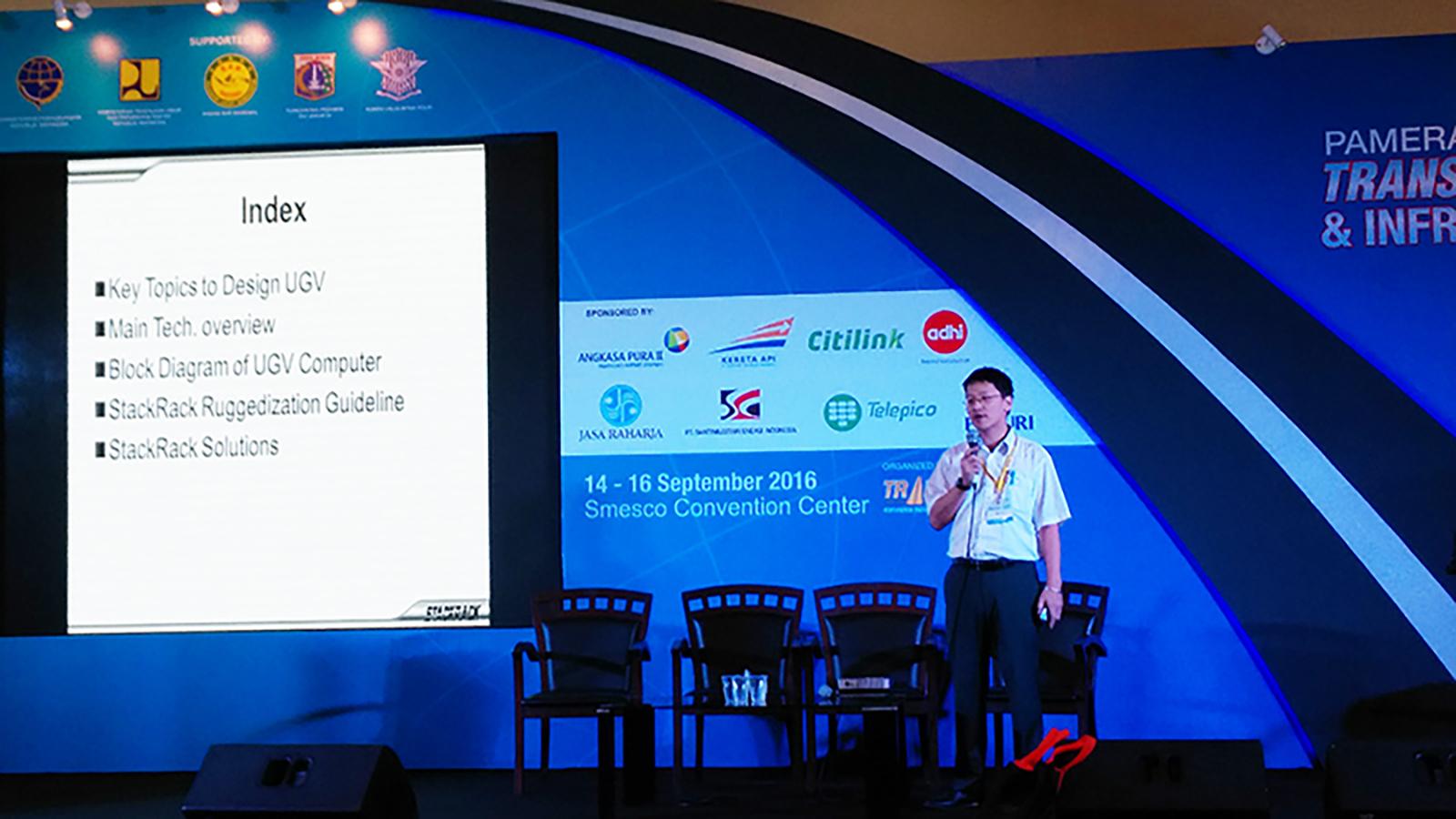 In Transportation and Infrastructure Exhibition in Jakarta. , STACKRACK presents rugged and extended temperature solutions focus on Intel latest generation advanced and revolutionary PCIe/104 and rugged COTS computer system to fulfill high-end industrial, railway, infrastructure applications and critical defense applications. Special thanks for government officers, local media's interview and all good partners' visit. We wish to see you soon!